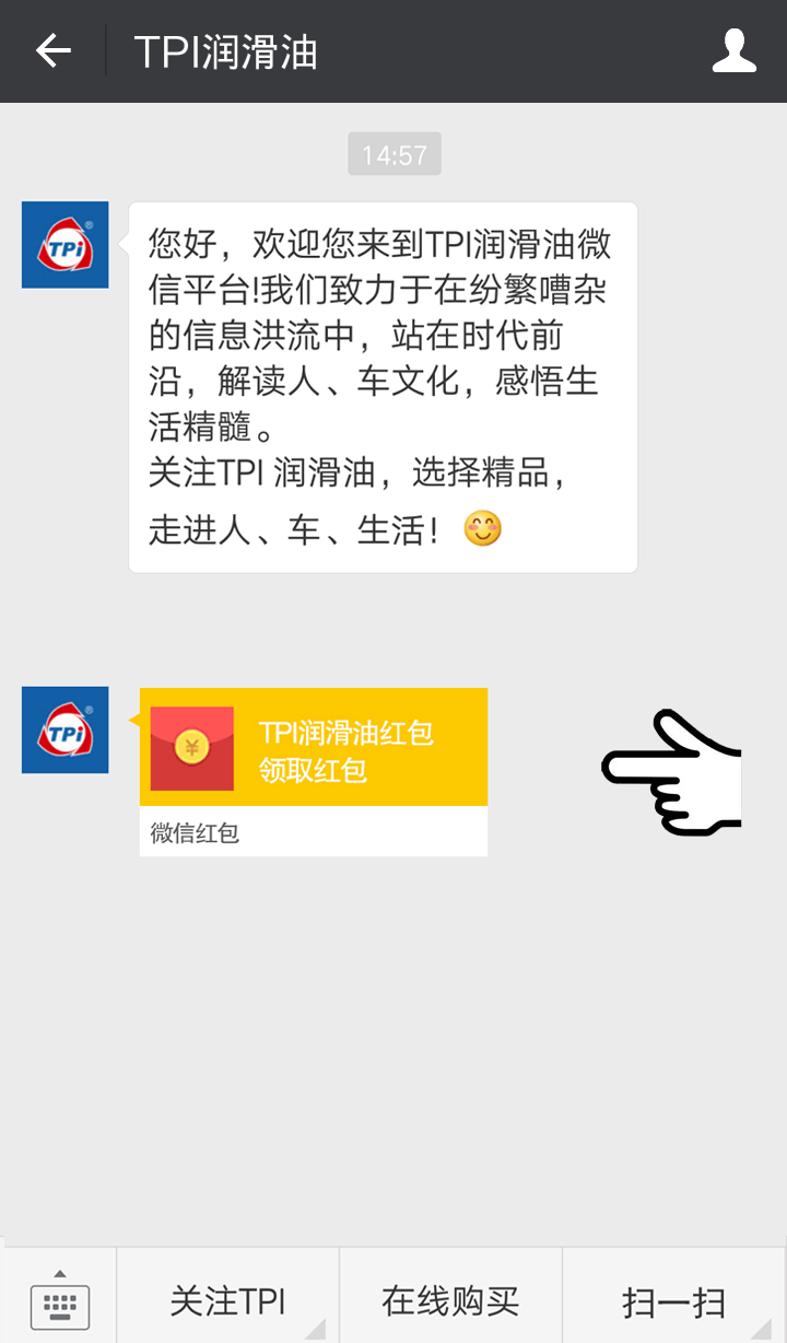 1.關(guān)注泰普艾潤(rùn)滑油官方微信(tpi4007006919)